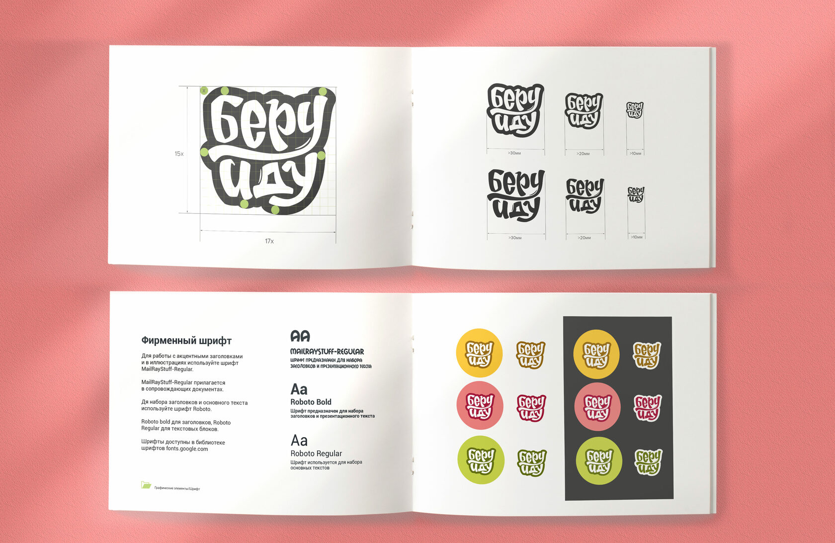 Основой визуального решения стал шрифтовой логотип в стиле граффити. Это отсылает к уличной живописи и создает немного хулиганское настроение, а элементы стиля комиксов бросают вызов покупателю и привлекают внимание. Сочные оттенки в концепции говорят о натуральности и свежести продуктов. Простота и понятность образов позволяют избежать двусмысленности: проще некуда — беру и иду.
