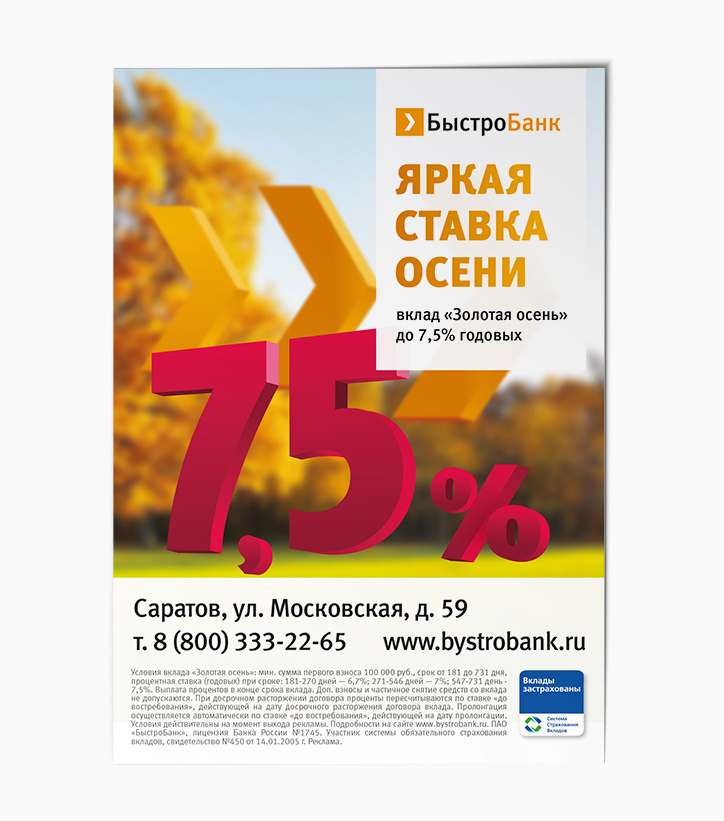 БыстроБанк — первый самостоятельный банк Удмуртии. Коммуникация бренда основана на идее банка, который работает для людей и где все вопросы решаются быстро и просто. Работа с клиентом ведется с 2003 года. Агентство занималось стратегией позиционирования, неймингом, внешним и внутренним оформлением, провело более пятидесяти рекламных кампаний.