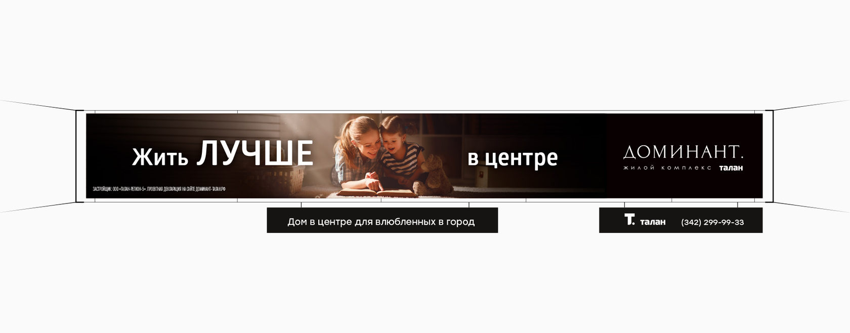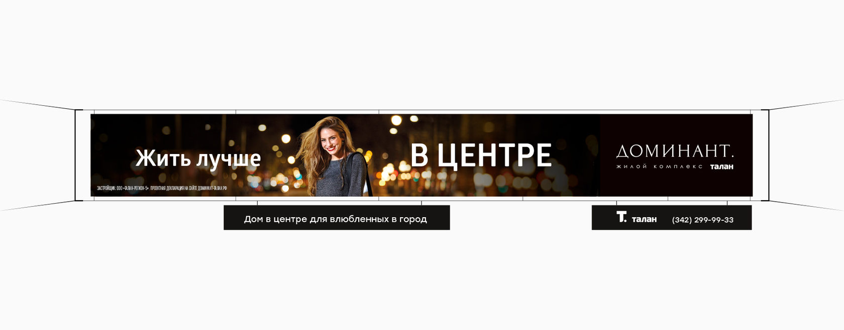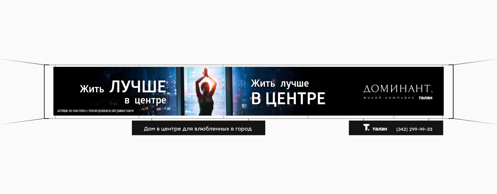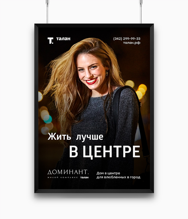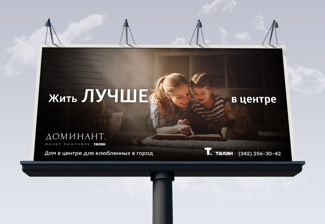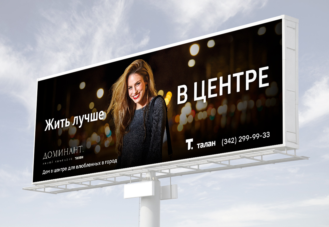 Работа агентства над новым жилым комплексом в Перми началась со стратегии позиционирования и нейминга. «Доминант» — начальная точка для изменения облика центрального района. Исходя из названия был разработан логотип, совершенный в линиях и деталях. Коммуникация с аудиторией построена на принципе жизни в месте, которое формирует новый центр.