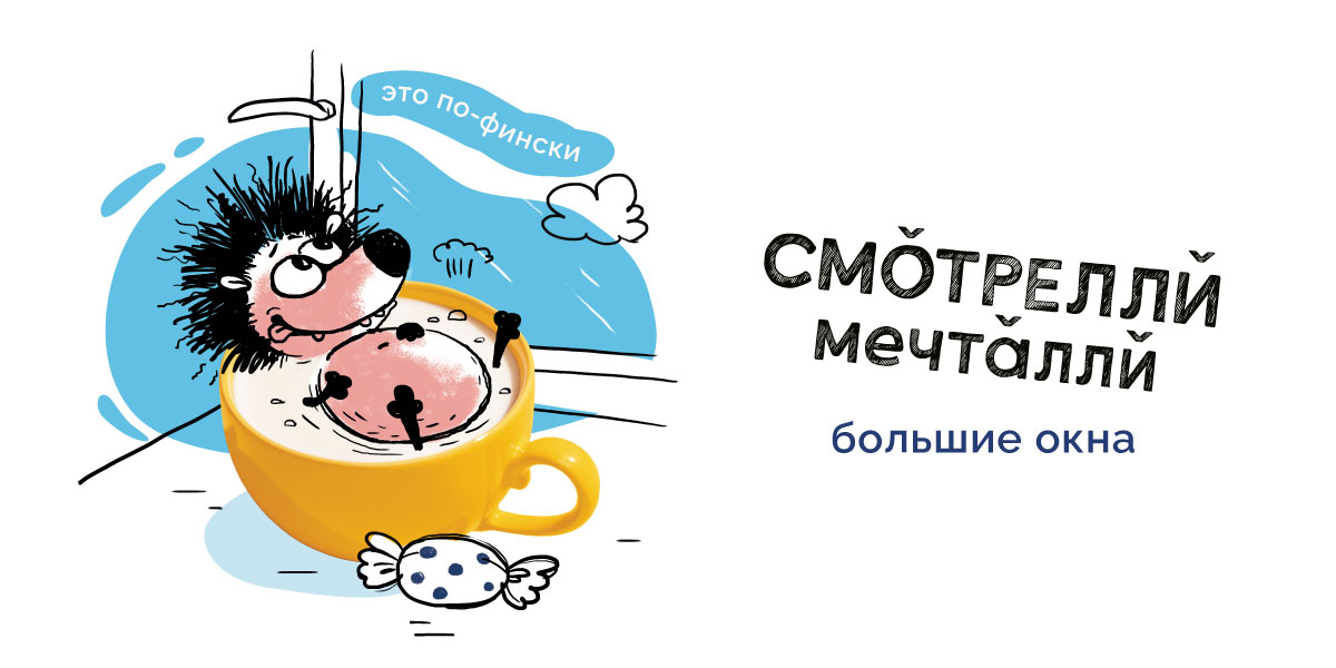 Для рекламной кампании мы придумали короткие и забавные русско-финские неологизмы, читая которые, невольно переходишь на финский акцент. Дерзкие посылы мы сопроводили такими же хулиганскими эмоциональными иллюстрациями с толикой самоиронии. Получилось свежо, немного наивно и очень «по-фински».