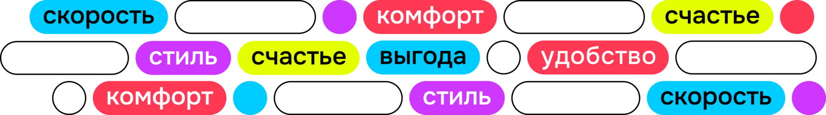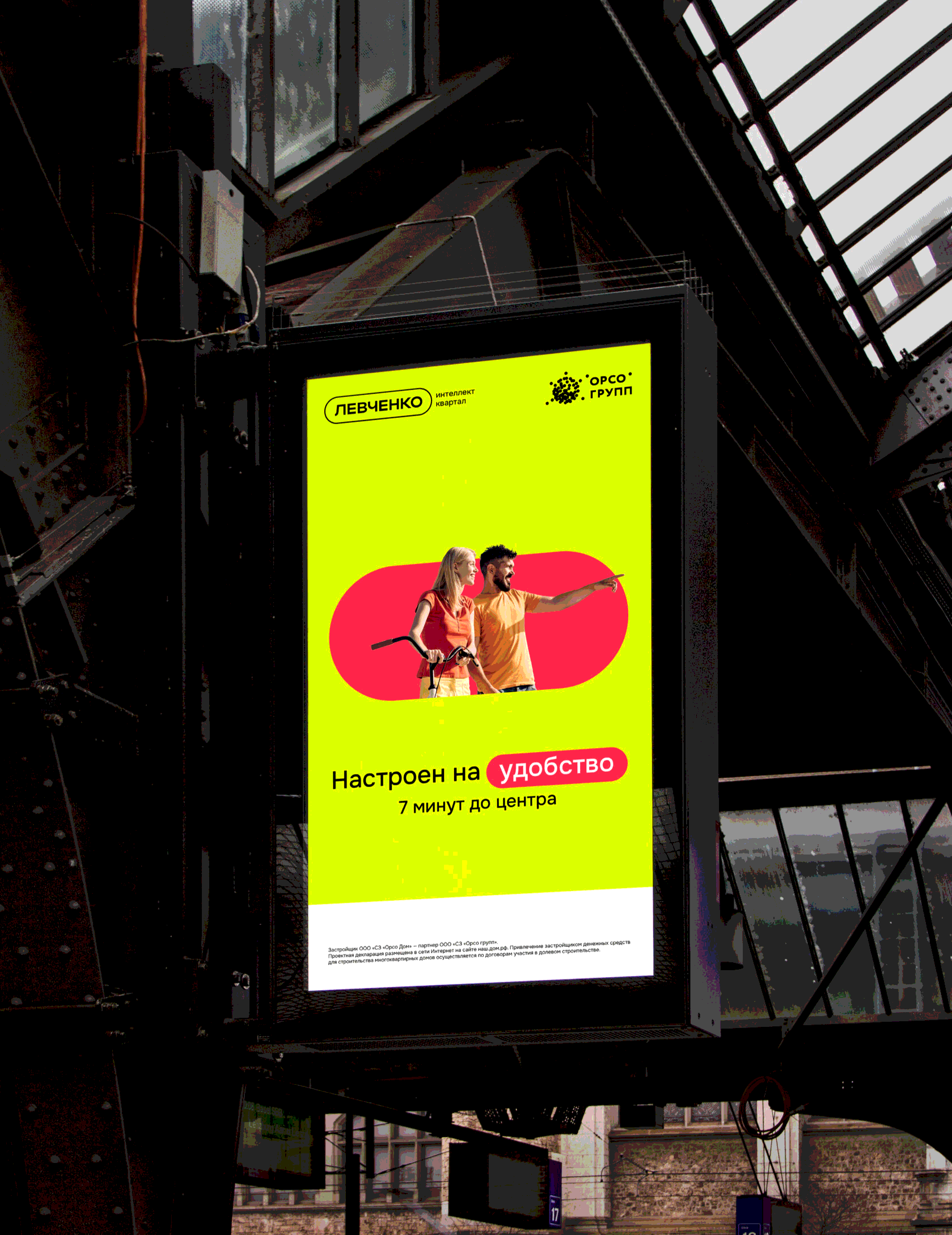 В рекламной кампании мы говорим не только о продукте, но и о ценности для покупателей, «настраивая» квартал на потребности каждого: на комфорт, на стиль, на скорость, на выгоду, на уют. Форма кнопки позволяет подчеркнуть самое важное на рекламных билбордах, диджитал-баннерах и в буклете.